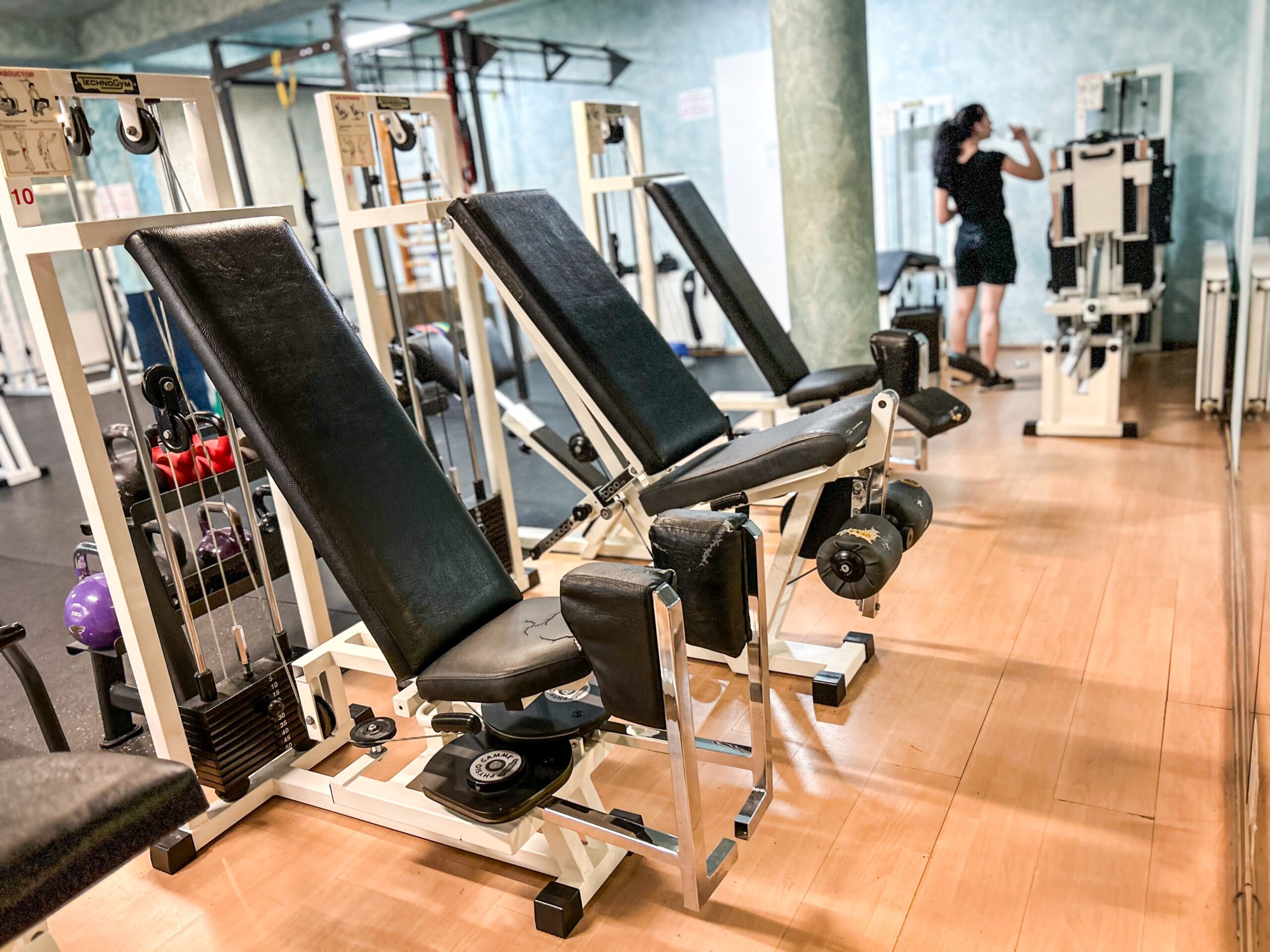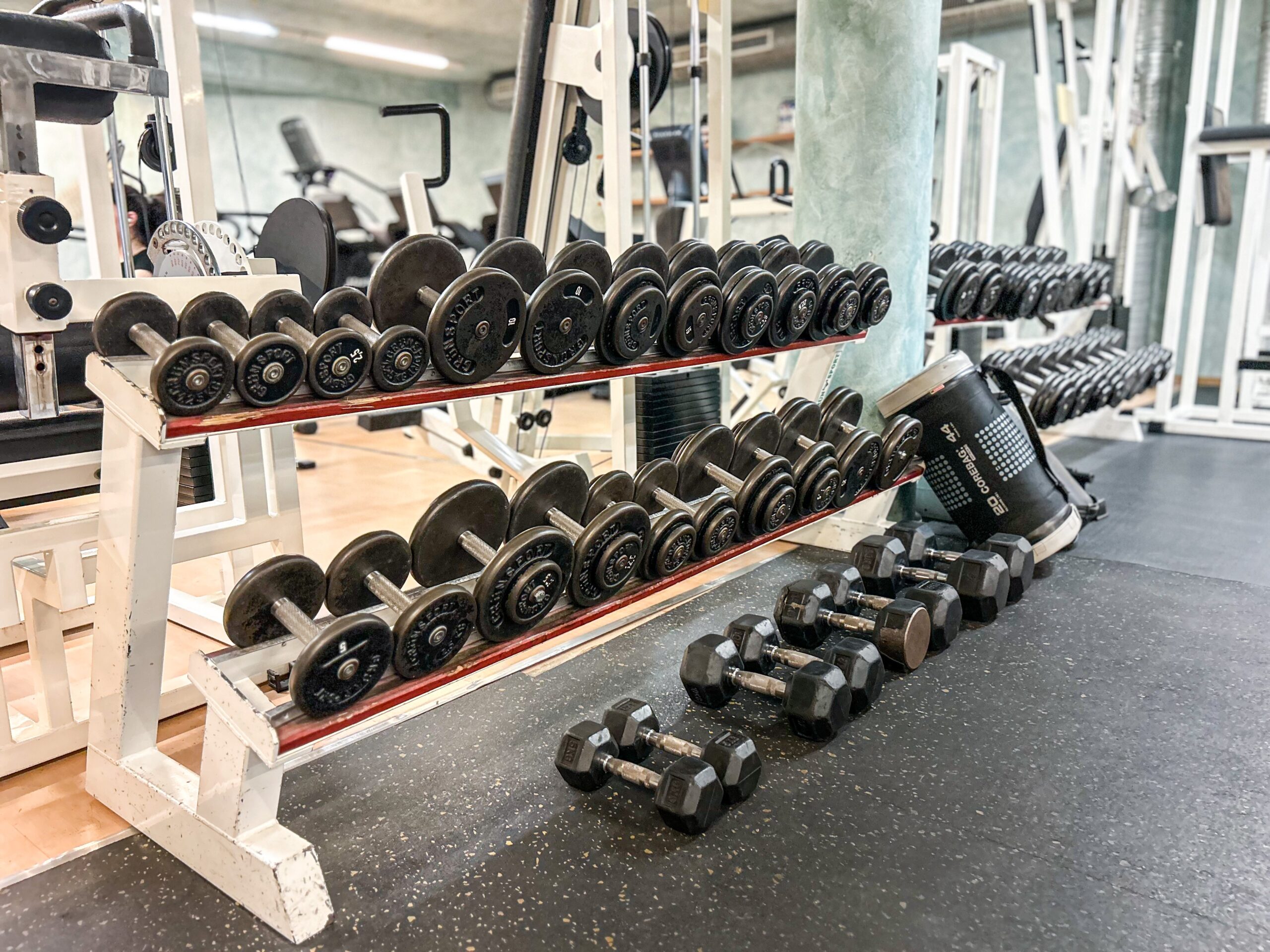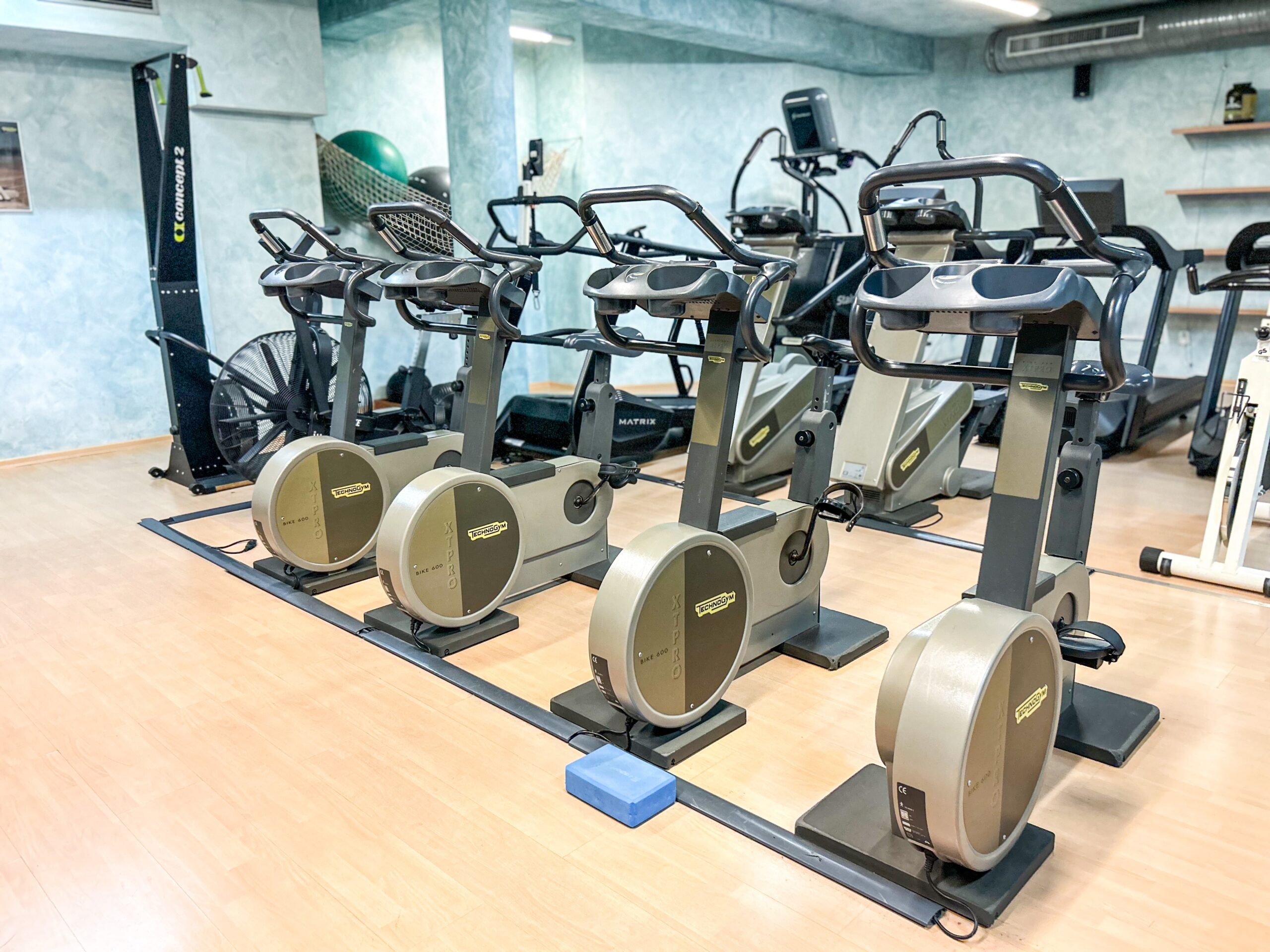 V posilovně jsou posilovací stroje značky Technogym na všechny svalové partie, volné jednoruční činky 1 45 kg, posilovací klec (power rack) včetně olympijských os a až 300 kg a závaží k nim, stojan na dřepy, lavice na bench, volné polohovací lavice, plyoboxy a pomůcky na funkční trénink therabandy, bulharské pytle, overbally, slambally, medicinbaly, a další.
