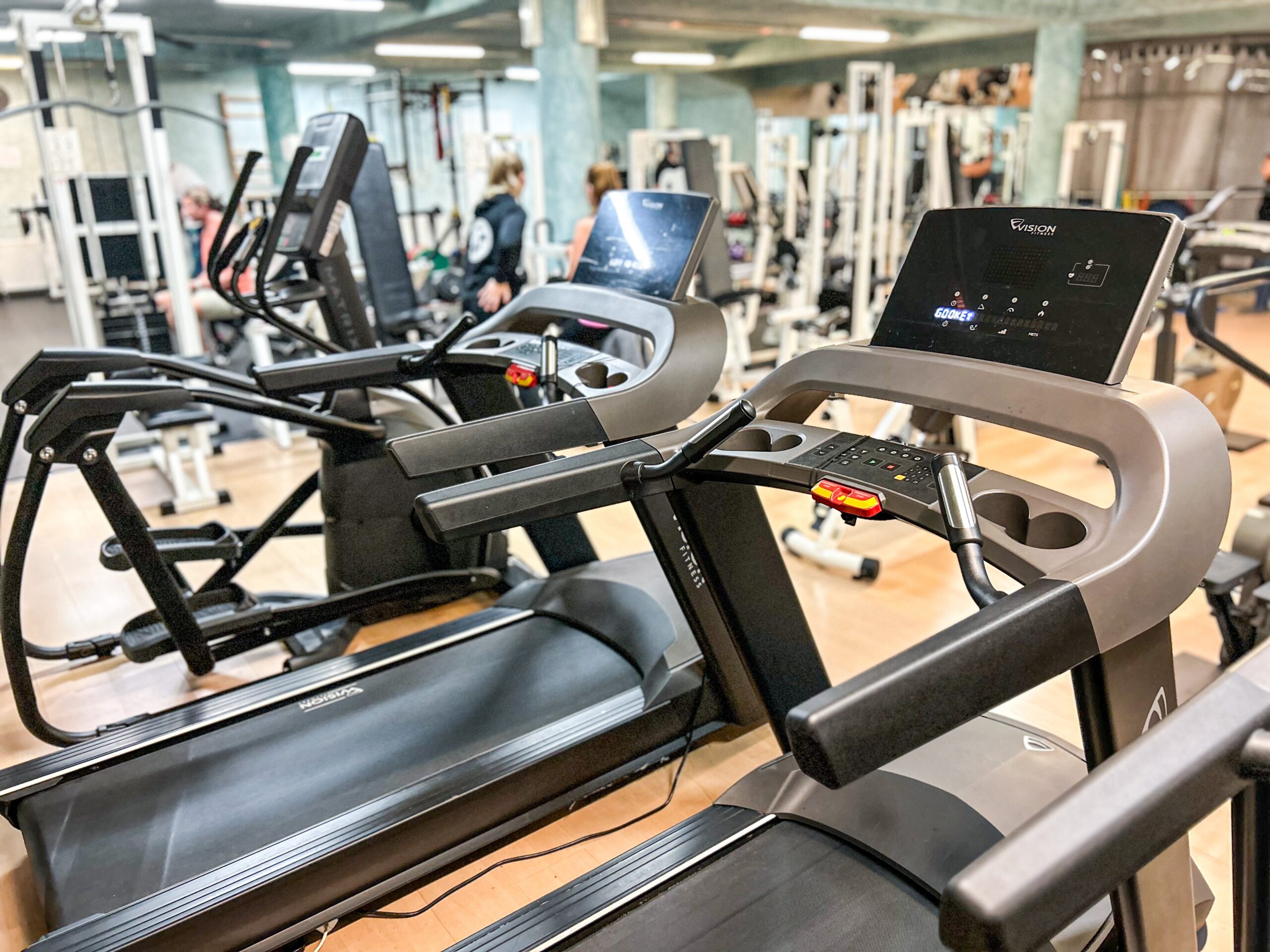 V našem fitness najdete posilovnu i kardio zónu. Kardio zóna disponuje běžeckými pásy, rotopedy, steppery, schody (satir master), AIR bikem, veslovacím trenažérem, ski, běžkařský trenažér (Skyerg), Matrix S-Drive.